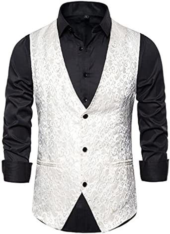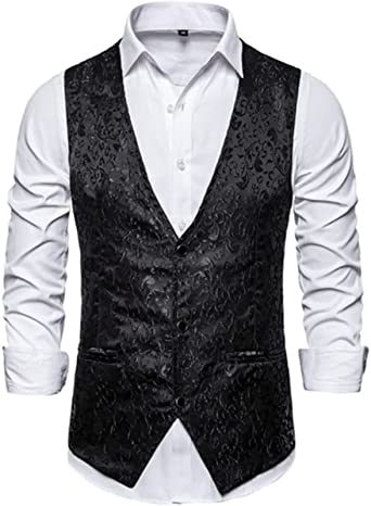 Men's Casual Printed Vests Fashion Solid Color Slim Fit V-Neck Vests Groomsmen Suits Host ClothingsMen's Casual Printed Vests Fashion Solid Color Slim Fit V-Neck Vests Groomsmen Suits Host Clothings