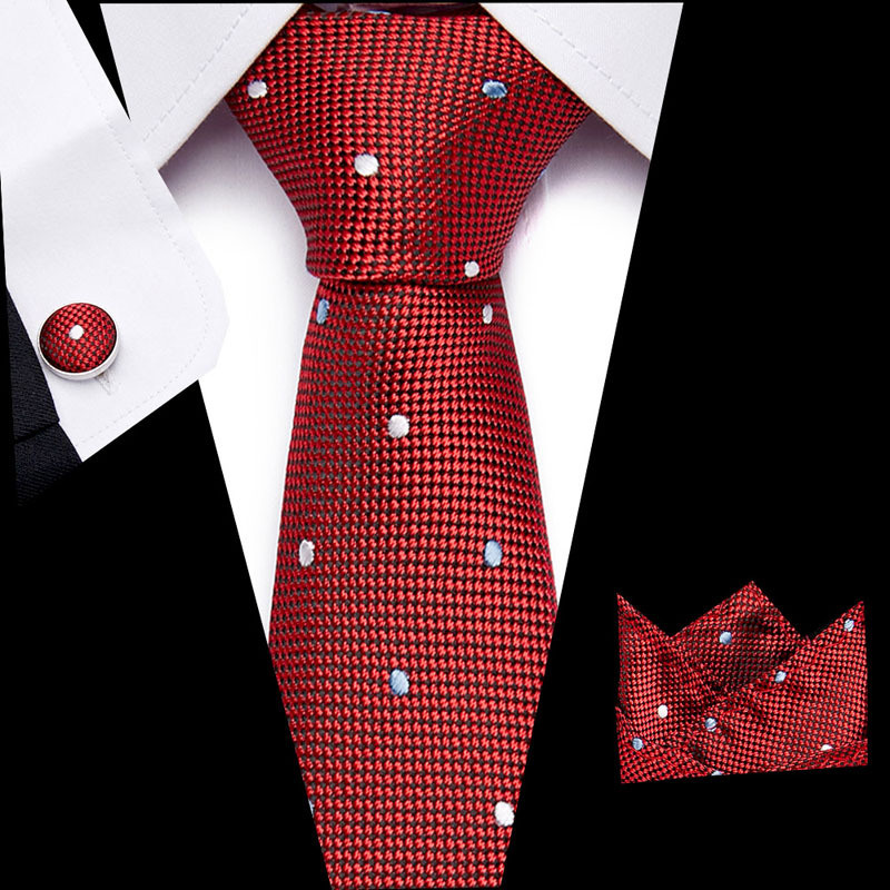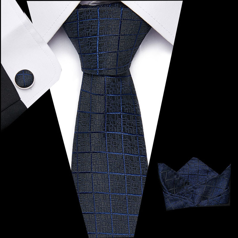 Tie, square scarf, cufflinks